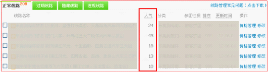 2.網(wǎng)店操作后臺(點擊下面的截圖中的“人氣”兩字,可以使線路按照人氣值從高到低或者是從低到高進(jìn)行排序):