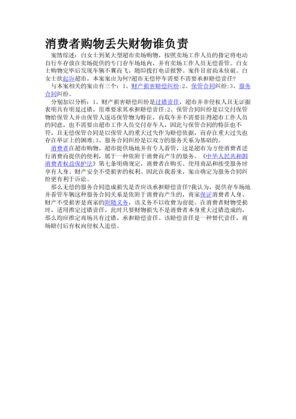 消費者購物丟失財物誰負責