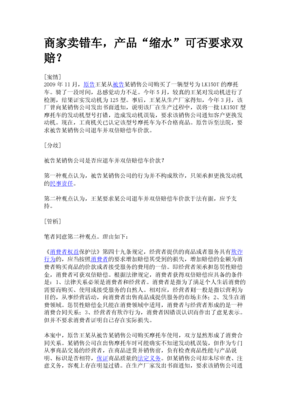 商家賣錯(cuò)車,產(chǎn)品“縮水”可否要求雙賠?