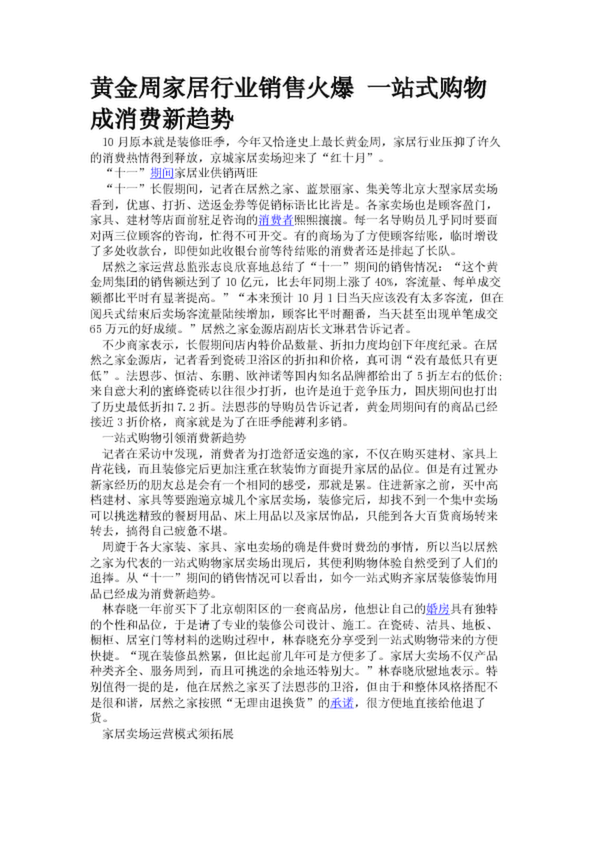 黃金周家居行業(yè)銷售火爆 一站式購物成消費新趨勢