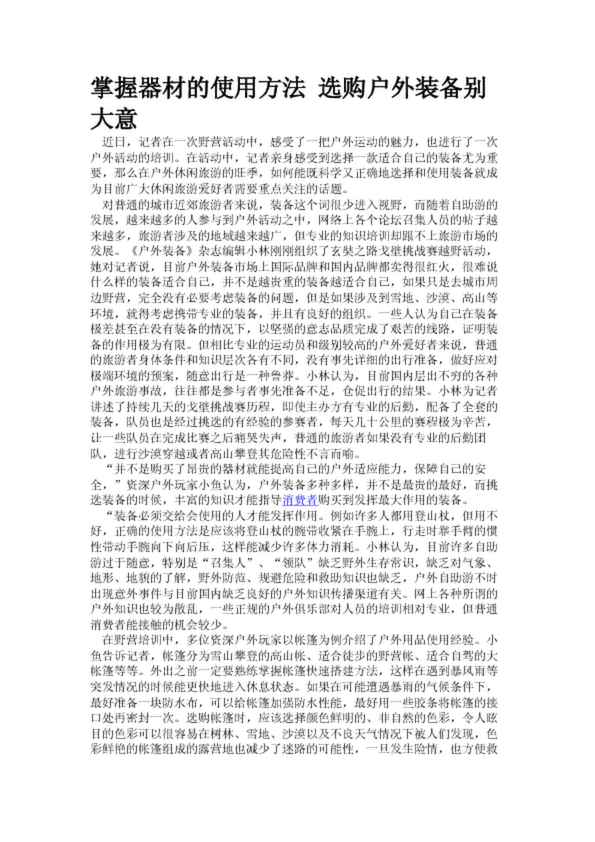 掌握器材的使用方法 選購戶外裝備別大意(19.58KB)