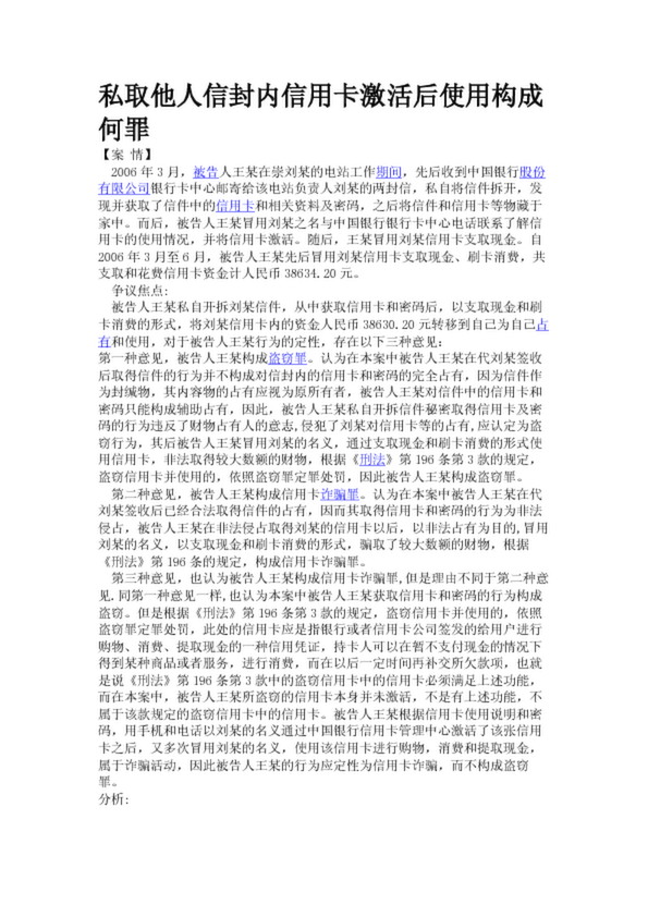 私取他人信封內信用卡激活后使用構成何罪(27.21KB)