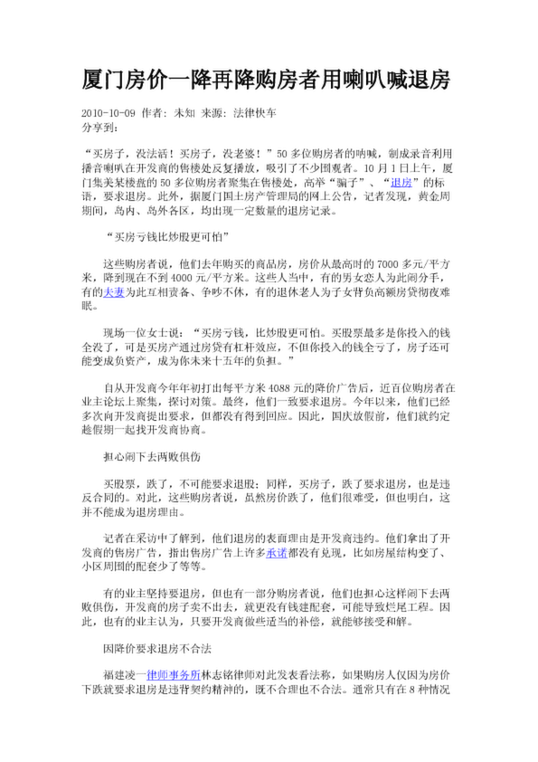 廈門(mén)房?jī)r(jià)一降再降購(gòu)房者用喇叭喊退房
