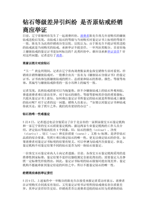 鉆石等級差異引糾紛 是否原鉆戒經銷商應舉證