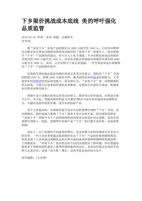 下鄉限價挑戰成本底線 美的呼吁強化品質監管(3.48KB)