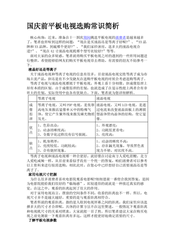國慶前平板電視選購常識簡析