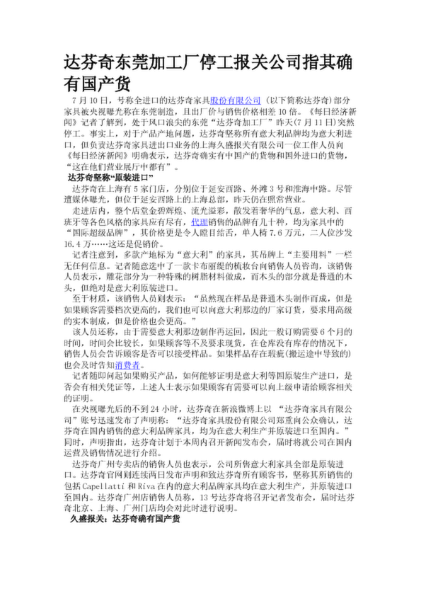 達芬奇東莞加工廠停工報關公司指其確有國產貨