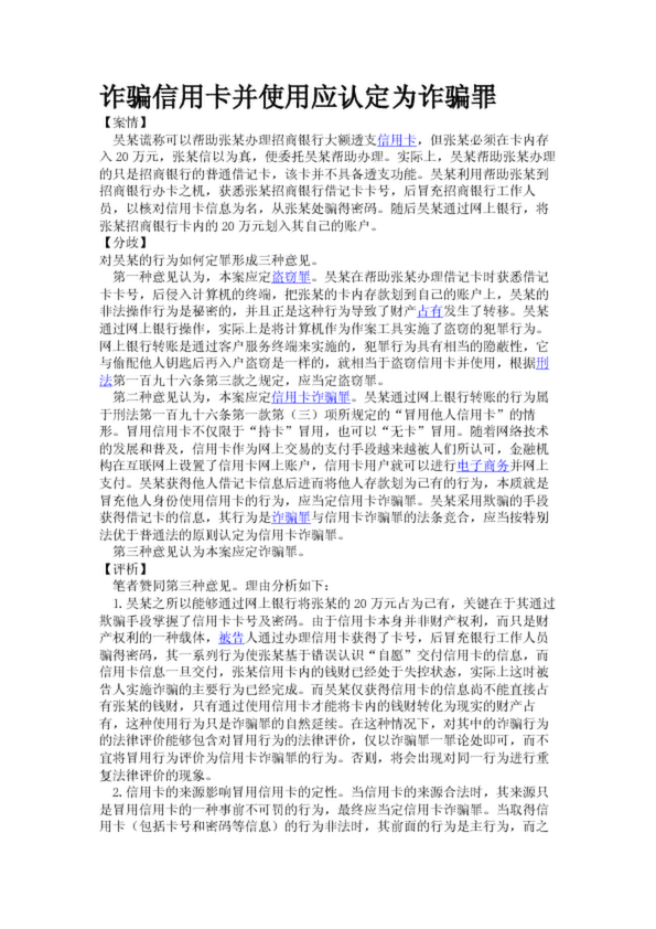 詐騙信用卡并使用應(yīng)認(rèn)定為詐騙罪