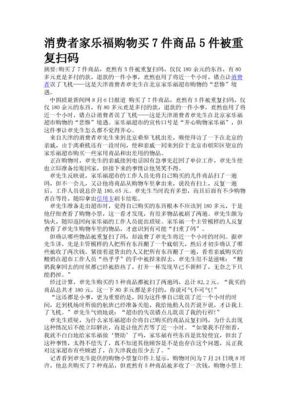 消費者家樂福購物買7件商品5件被重復掃碼