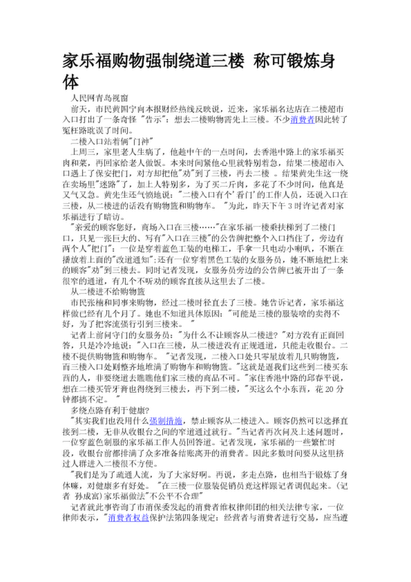 家樂福購物強制繞道三樓 稱可鍛煉身體