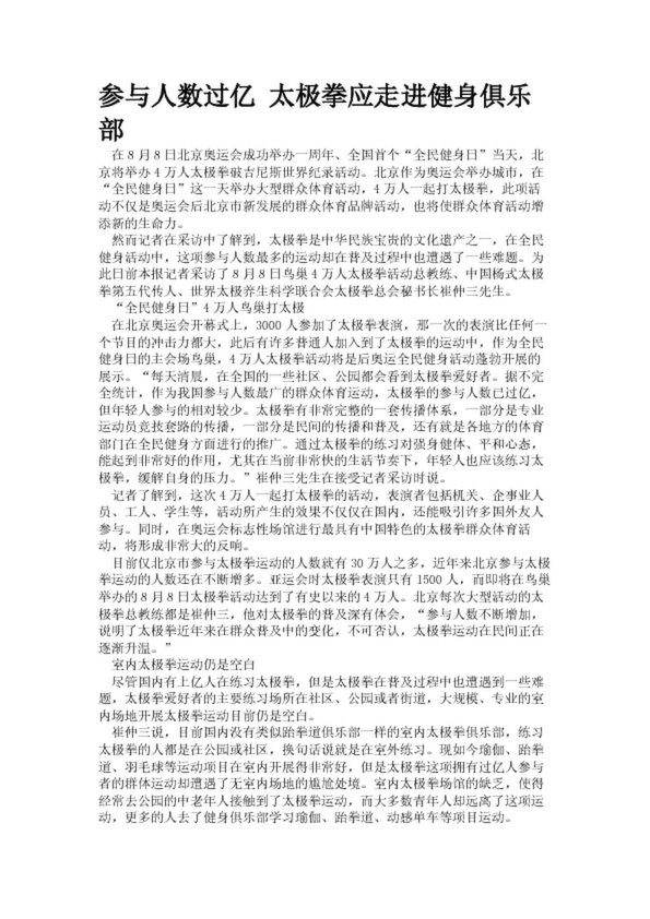 參與人數過億 太極拳應走進健身俱樂部(23.53KB)