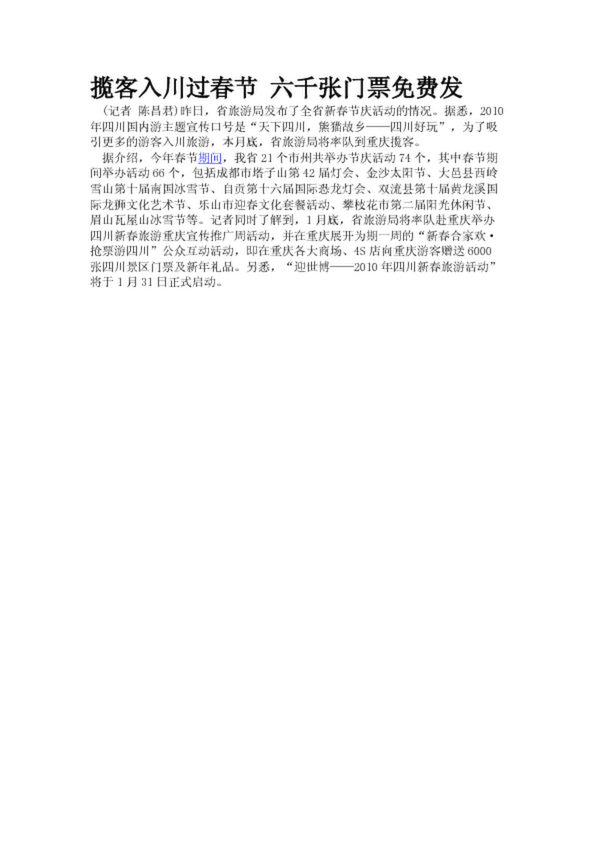 攬客入川過春節(jié) 六千張門票免費發(fā)