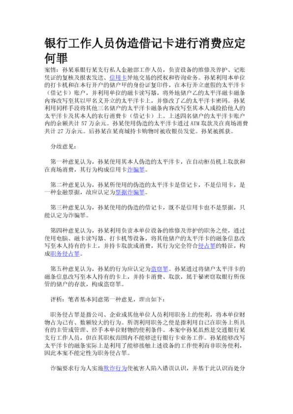 銀行工作人員偽造借記卡進行消費應定何罪(25.79KB)