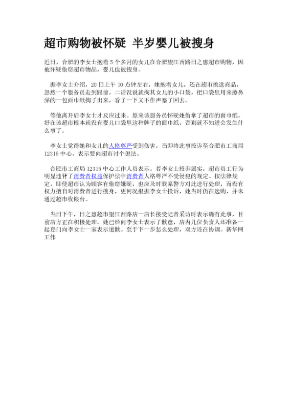 超市購物被懷疑 半歲嬰兒被搜身(18.59KB)