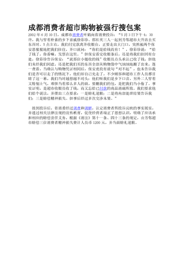 成都消費者超市購物被強行搜包案