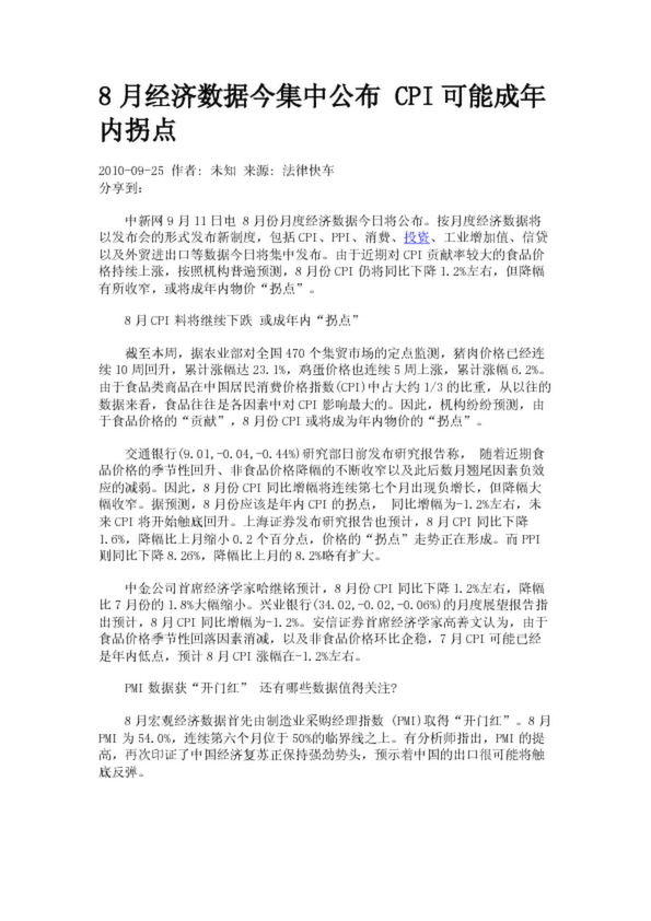 8月經濟數據今集中公布 CPI可能成年內拐點(3.66KB)