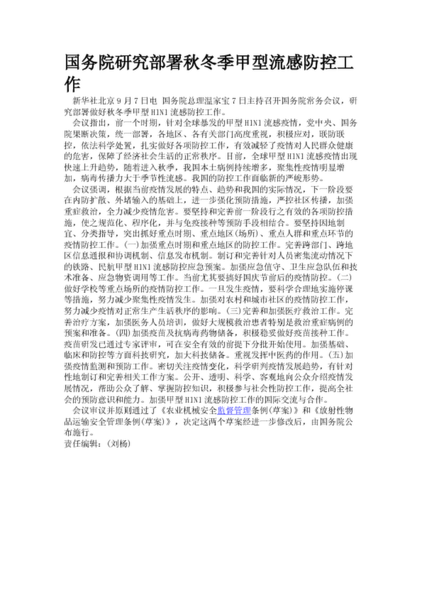 國務(wù)院研究部署秋冬季甲型流感防控工作