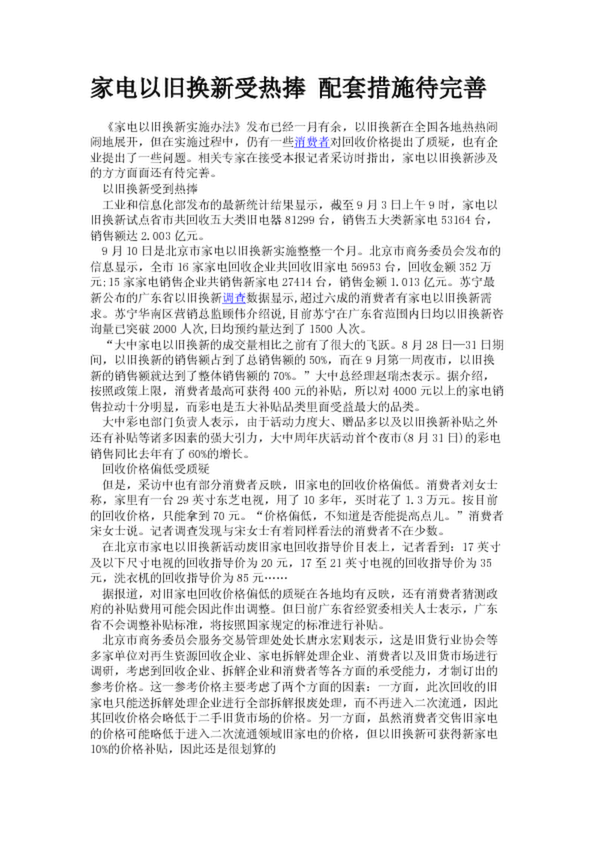 家電以舊換新受熱捧 配套措施待完善(27.55KB)
