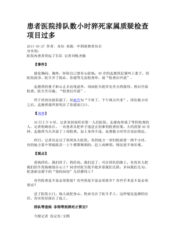 患者醫(yī)院排隊(duì)數(shù)小時(shí)猝死家屬質(zhì)疑檢查項(xiàng)目過多