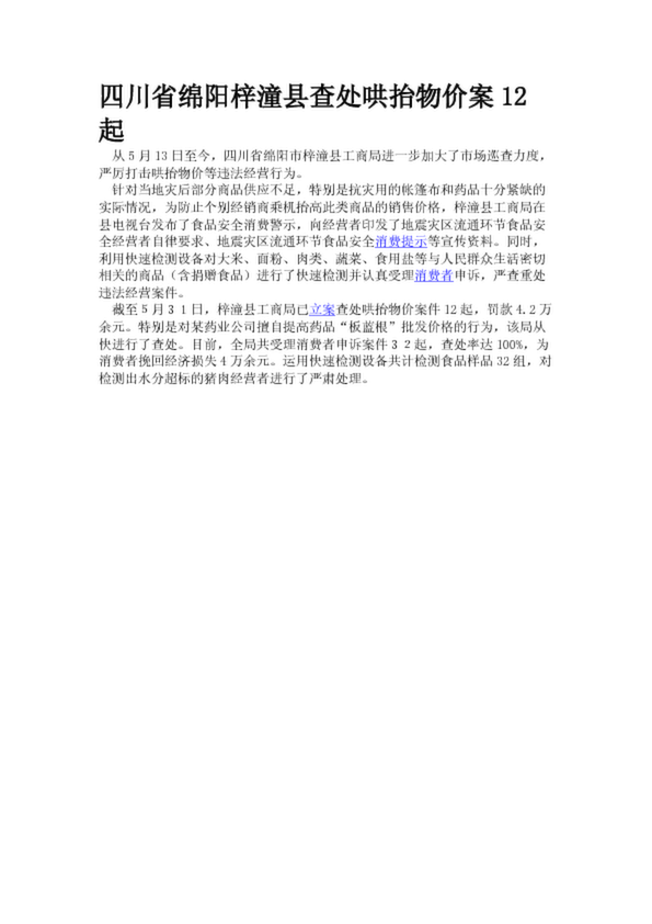 四川省綿陽梓潼縣查處哄抬物價案12起(17.33KB)