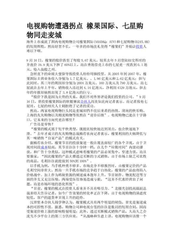 電視購物遭遇拐點 橡果國際、七星購物同走麥城
