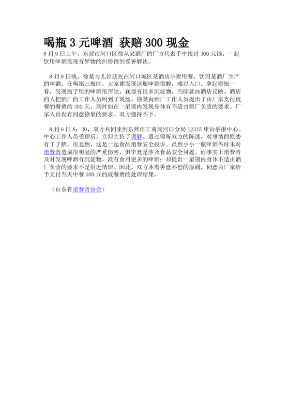 喝瓶3元啤酒 獲賠300現金(17.70KB)