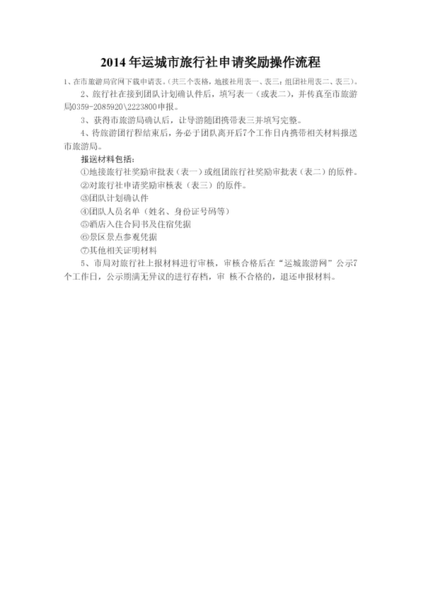 2014年運城市旅行社申請獎勵操作流程
