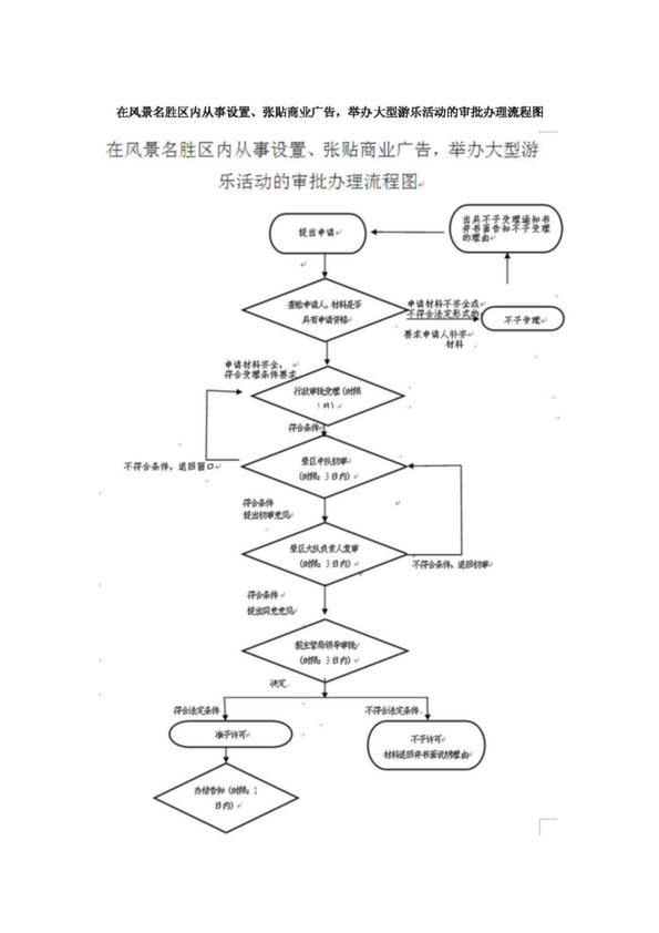 在風景名勝區內從事設置、張貼商業廣告,舉辦大型游樂活動的審批辦理流程圖(0.22MB)