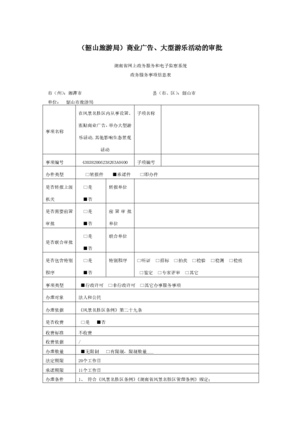 (韶山旅游局)商業廣告、大型游樂活動的審批