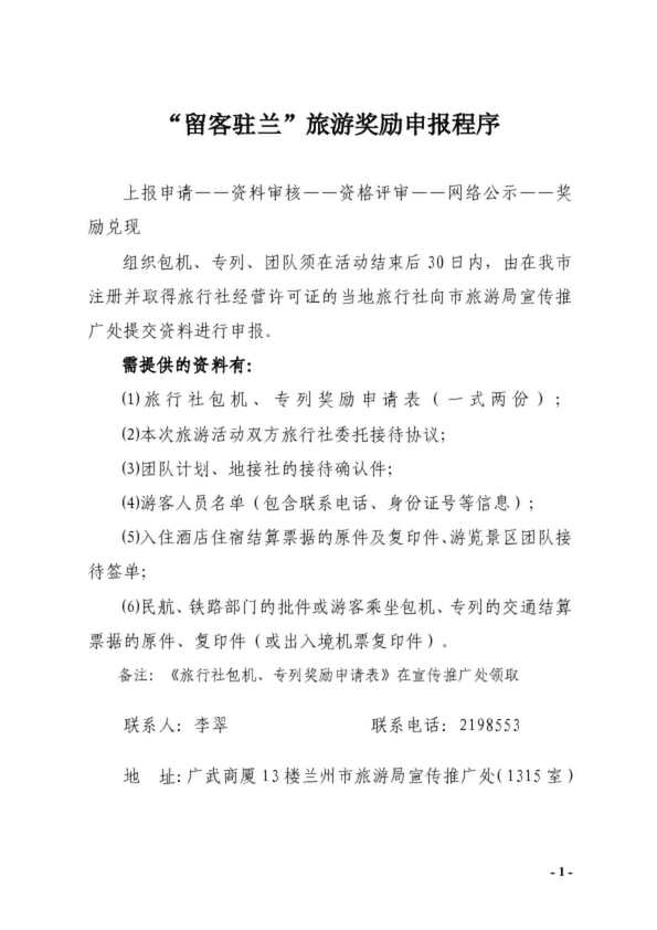“留客駐蘭”旅游獎勵申報程序