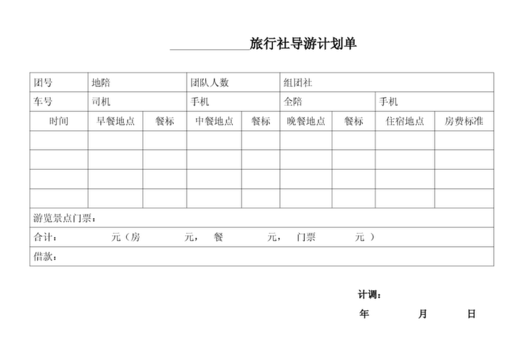 旅行社計調-導游計劃單