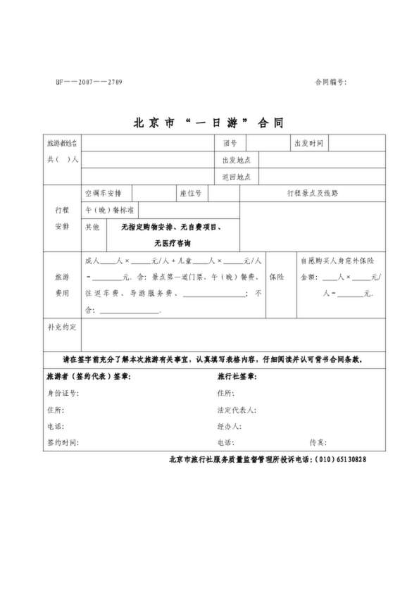 一日游合同范本
