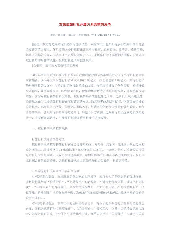 本文首先從旅行社的經營現狀出發,分析旅行社的企業特點和在旅行社中開展關系營銷的必要性,隨后系統地分析旅行社該怎樣與顧客、內部市場、競爭者、流通市場、影響者等搞好關系,并提出以建立顧客忠誠為中心、實施旅行社關系營銷的策略,達到適應旅行社外部條件的變化,使旅行社能長期健康發展.