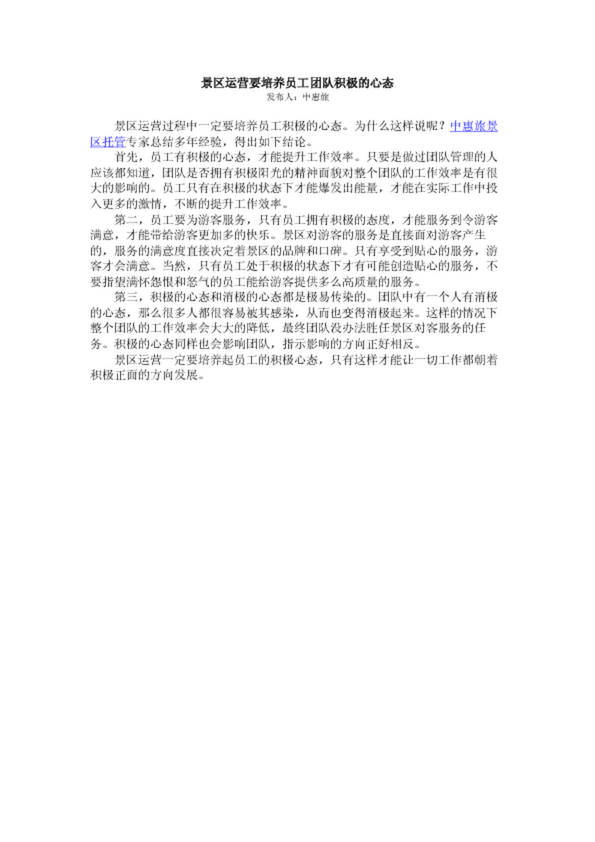 景區(qū)運營要培養(yǎng)員工團(tuán)隊積極的心態(tài)