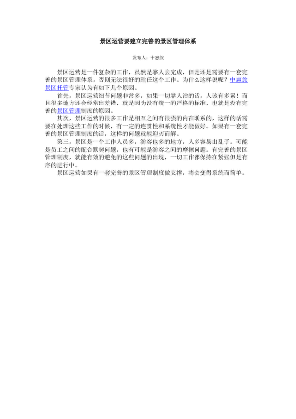 景區運營要建立完善的景區管理體系
