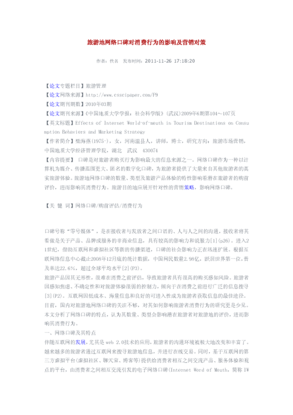 旅游地網絡口碑對消費行為的影響及營銷對策(35.50KB)