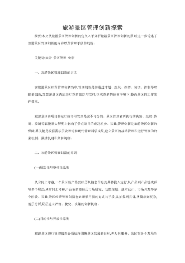 旅游景區管理創新探索