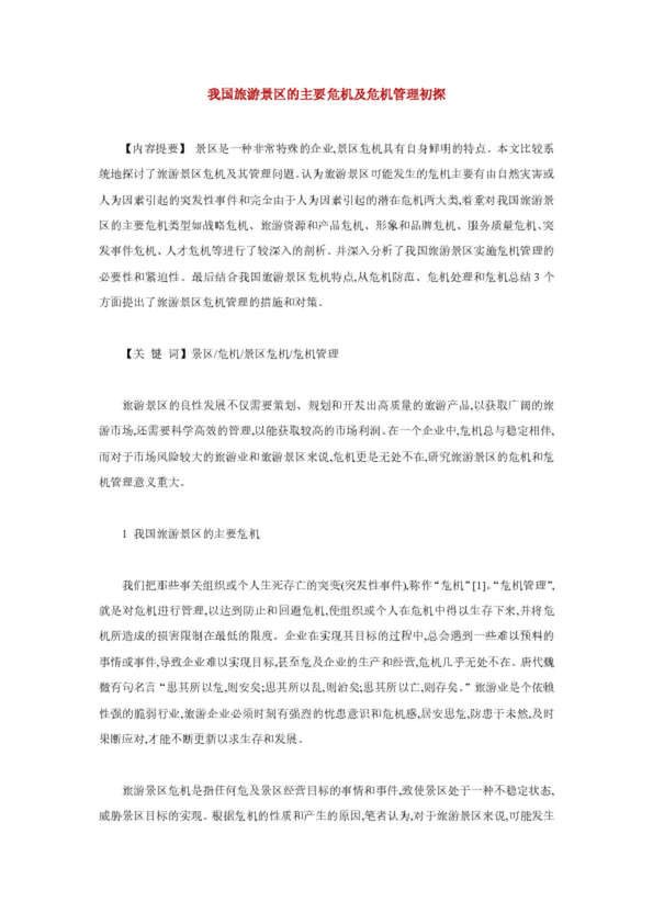 我國旅游景區的主要危機及危機管理初探