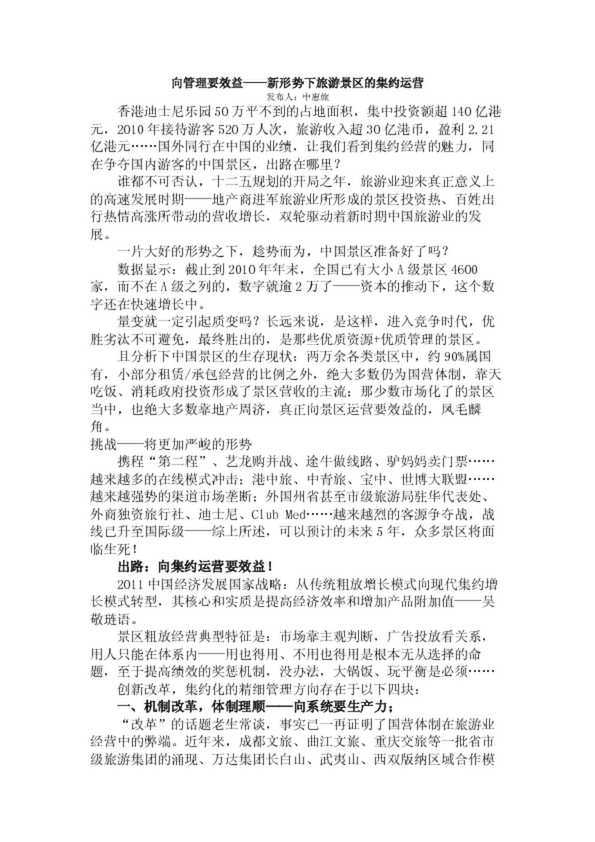 向管理要效益——新形勢下旅游景區的集約運營