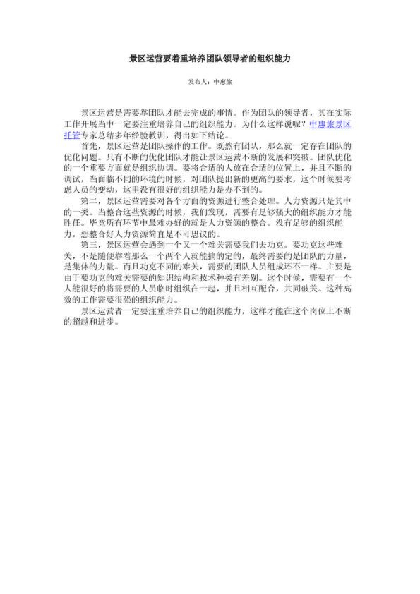 景區(qū)運營要著重培養(yǎng)團(tuán)隊領(lǐng)導(dǎo)者的組織能力