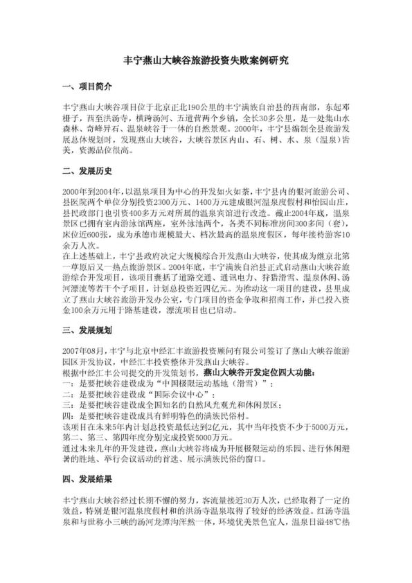 豐寧燕山大峽谷旅游投資失敗案例研究