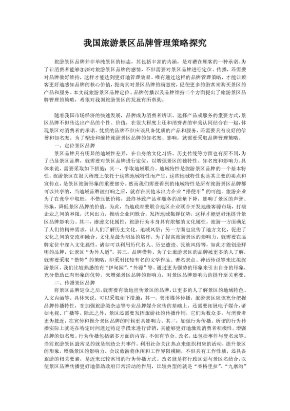 我國旅游景區品牌管理策略探究