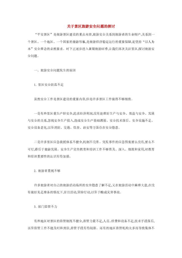 關于景區旅游安全問題的探討