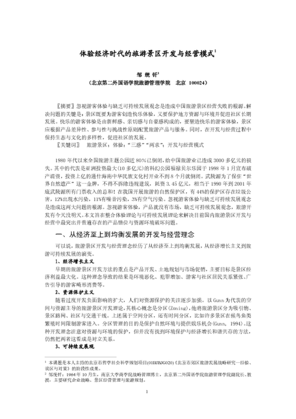 體驗經(jīng)濟時代的旅游景區(qū)開發(fā)與經(jīng)營模式