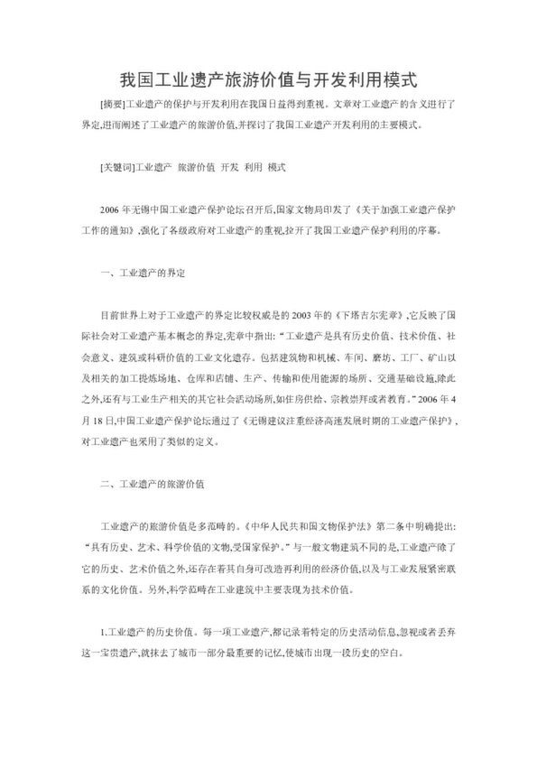 我國工業遺產旅游價值與開發利用模式