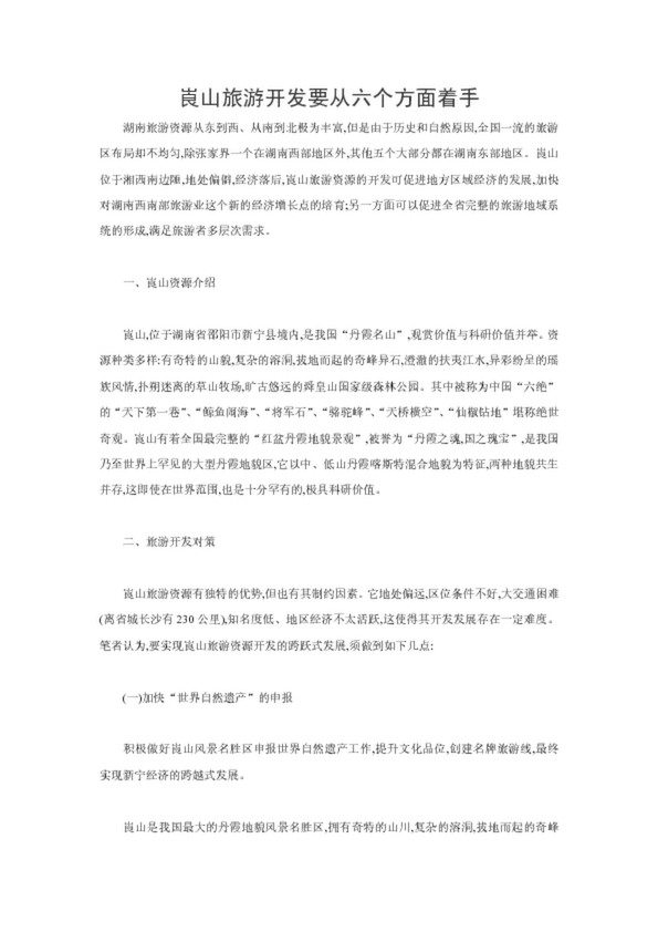 崀山旅游開發(fā)要從六個方面著手