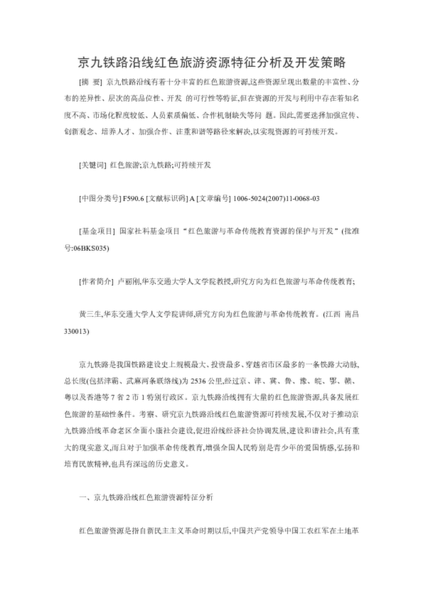 京九鐵路沿線紅色旅游資源特征分析及開發策略(24.00KB)