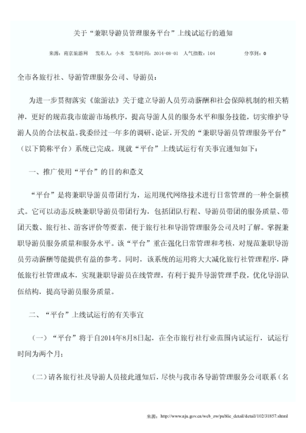 關(guān)于“兼職導(dǎo)游員管理服務(wù)平臺(tái)”上線試運(yùn)行的通知(19.00KB)