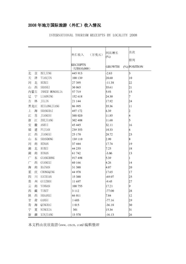 2012年地方國際旅游(外匯)收入情況,地區(qū) 外匯收入(萬美元) 同比增長(%) 北京