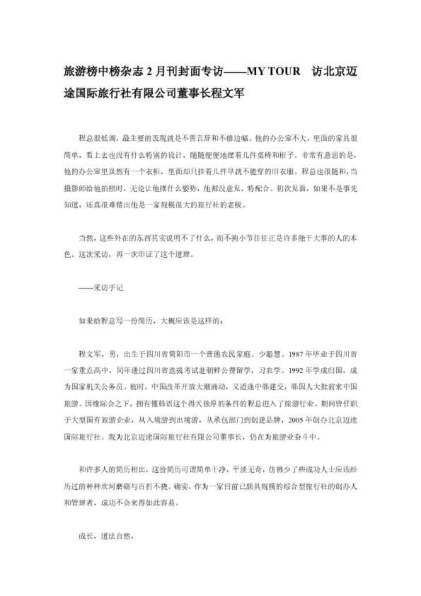 旅游榜中榜雜志2月刊封面專訪——MY TOUR 訪北京邁途國際旅行社有限公司董事長程文軍(19.50KB)